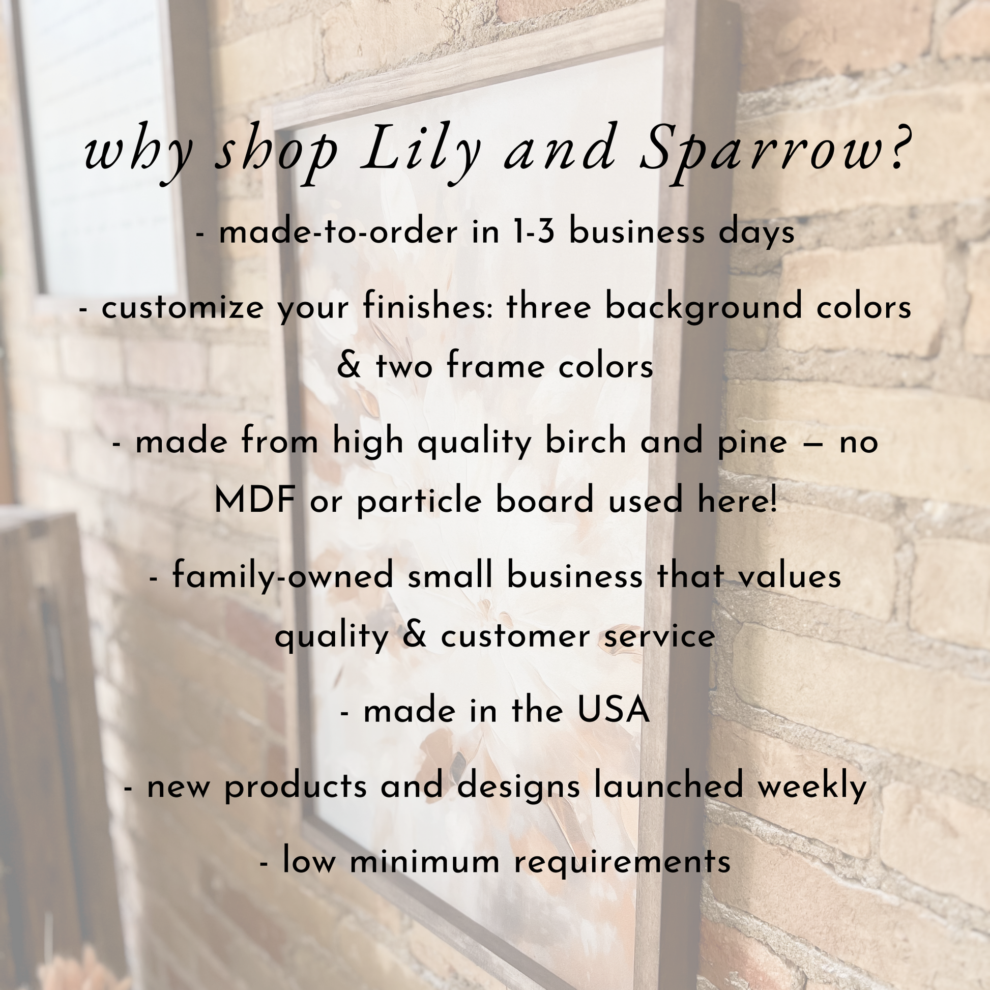 BACK: unfinished, natural birch; Lily & Sparrow stamped logo