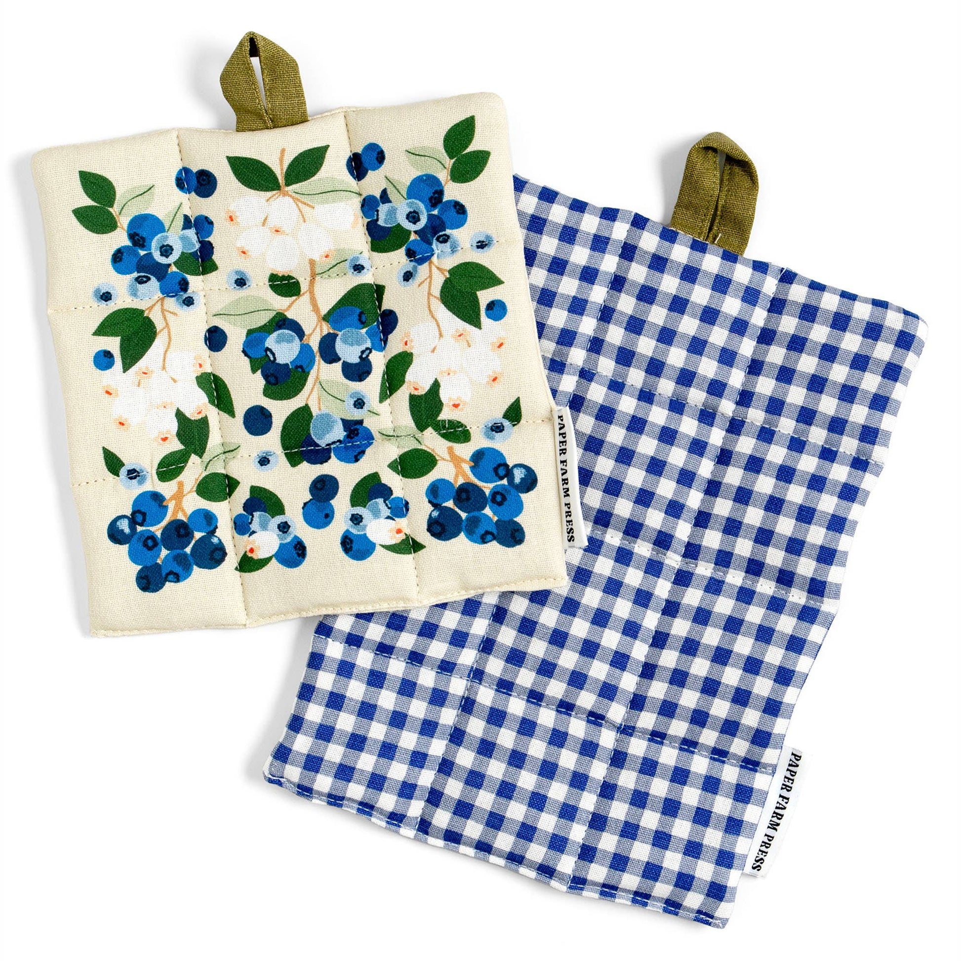 Add a touch of charm to your kitchen with our Blueberry Field Pot Holder Set! This delightful duo features a soft blue gingham design paired with a lovely blueberry motif, perfect for creating a fresh, inviting atmosphere. Designed for both style and functionality, these pot holders offer excellent heat protection while brightening up your cooking space. Ideal for handling hot pots and pa , they ensure your hands stay safe while you whip up your favorite recipes. This charming set makes a thoughtful gift for housewarmings, weddings, or any occasion. Whether for a passionate cook or a lover of rustic decor, the Blueberry Field Pot Holder Set is a delightful addition to any kitchen. Bring a touch of berry charm to your home or surprise a friend with this beautiful gift!