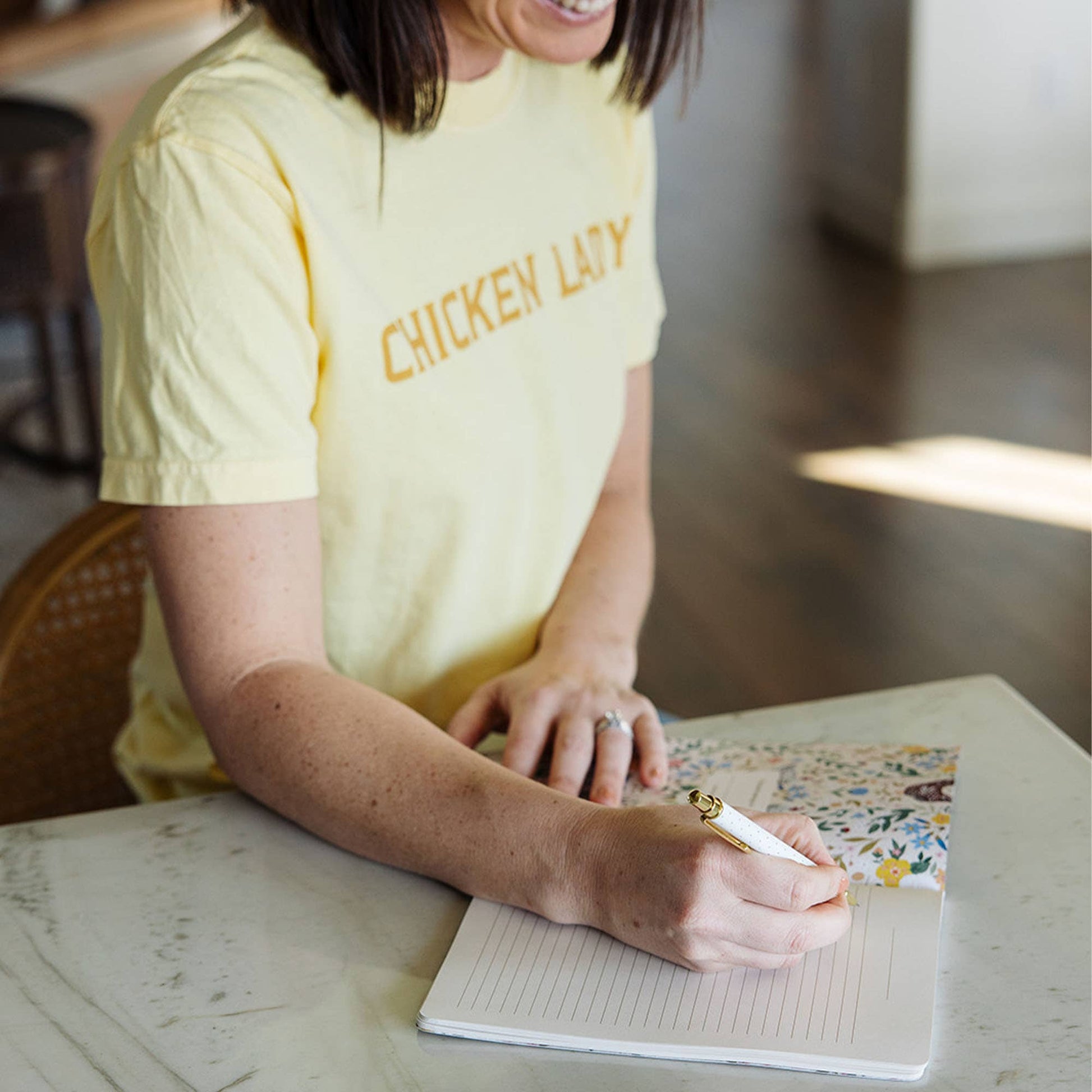 Embrace the charm of farmhouse living with our Chickens & Flowers Stitched Notebook! Adorned with delightful illustrations of Sussex, Brahma, Orpington, and Barred chickens nestled among vibrant wildflowers, this notebook is a celebration of country life. Perfect for journaling, taking notes, or jotting down grocery lists, the spacious pages provide plenty of room for your thoughts and ideas. The elegant stitched binding adds a rustic touch, making it a beautiful addition to any desk or kitchen. This notebook makes a thoughtful gift for chicken enthusiasts, aspiring writers, or anyone who appreciates a bit of rural charm in their everyday life. Ideal for birthdays, housewarmings, or special occasions, the Chickens & Flowers Stitched Notebook is both functional and stylish—an inviting canvas for your creativity!