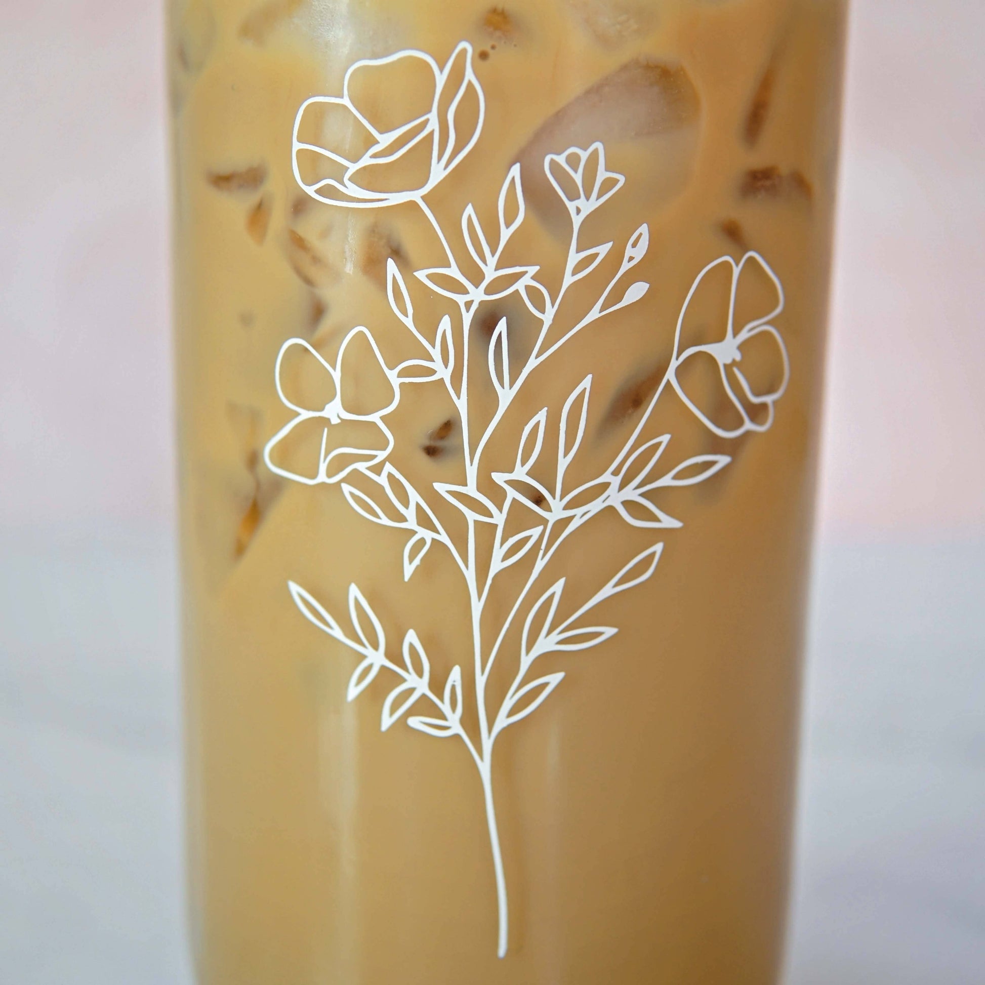 Floral 22 oz Glass Tumbler + Bamboo Top + Straw